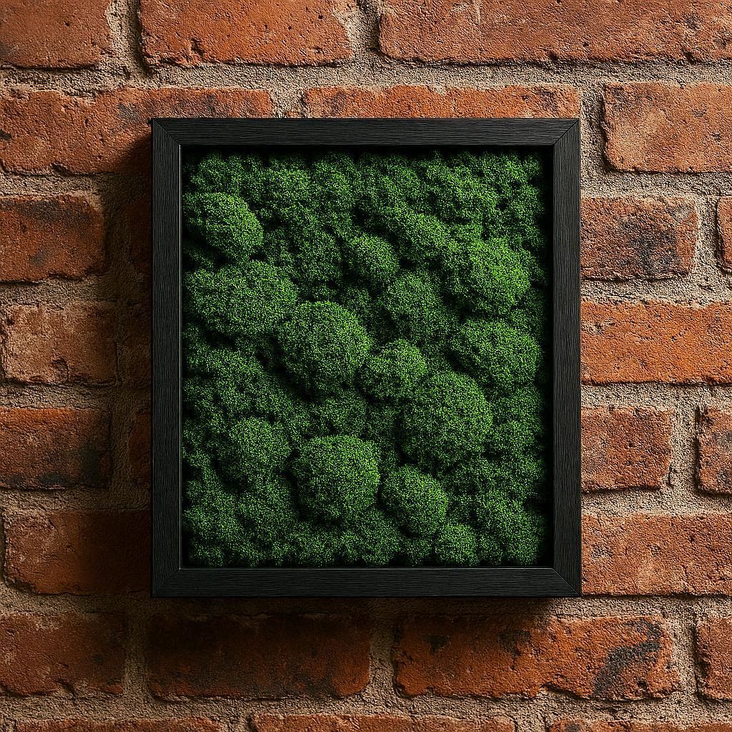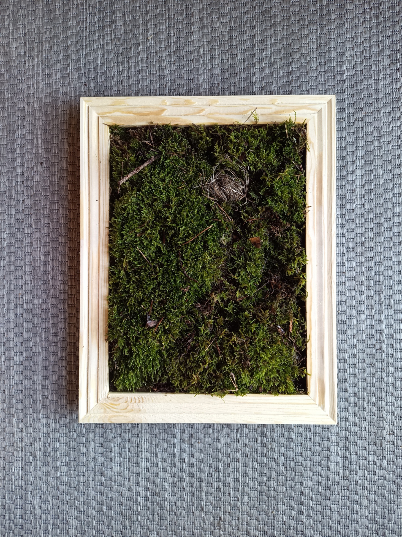 Moss / Plant Panel indoor oder outdoor aus natürlichem und lebendigem Moos, diversen Sedum-Pflanzen und dekorativen Elementen aus der Natur wie Zapfen, Hölzer, Gräser